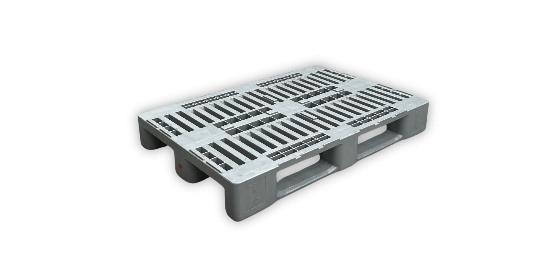 El medio palé de plástico de DPL está fabricado en polietileno (PE) y tiene seis perfiles de acero. Se puede introducir por los cuatro lados, es fácil de apilar, tiene una gran capacidad de carga y resulta ideal para áreas con requisitos de higiene especiales.